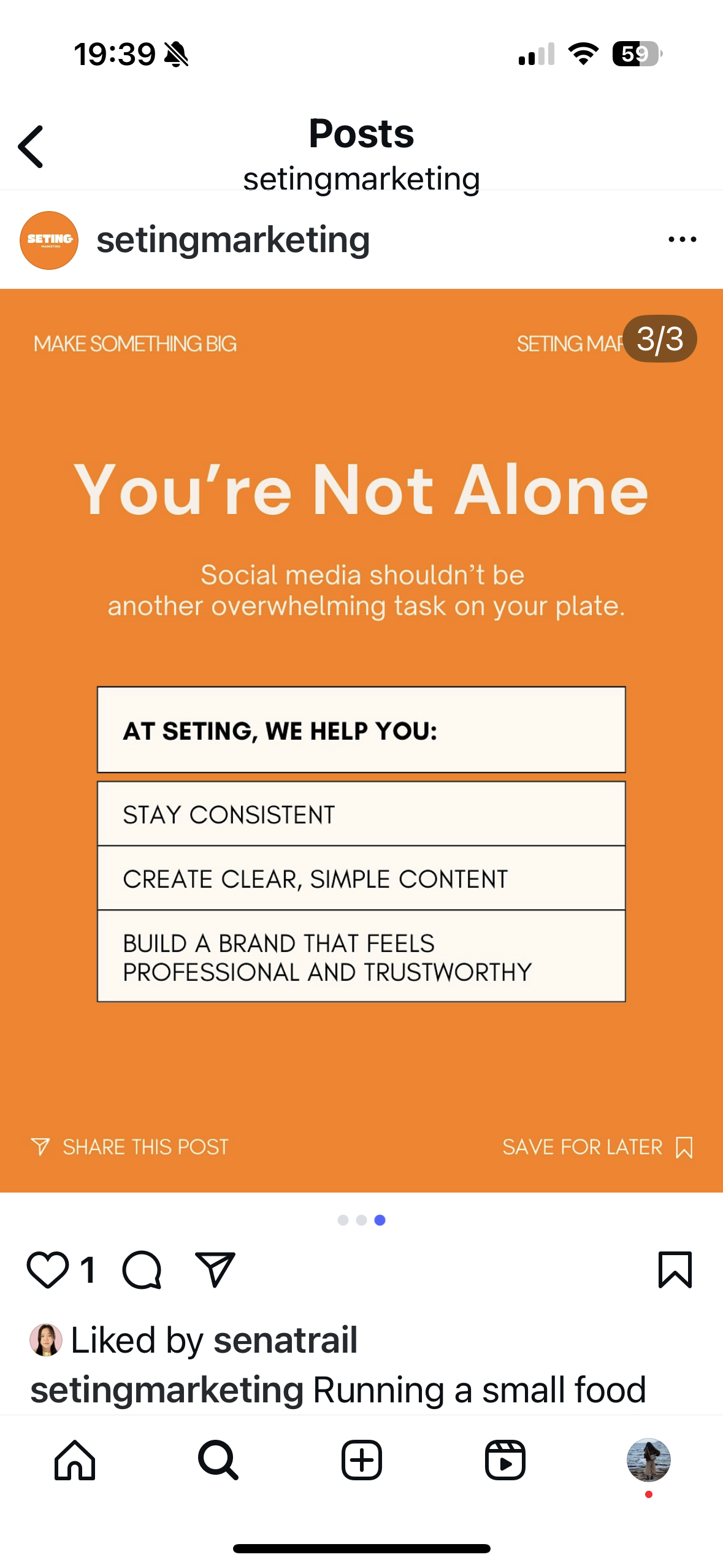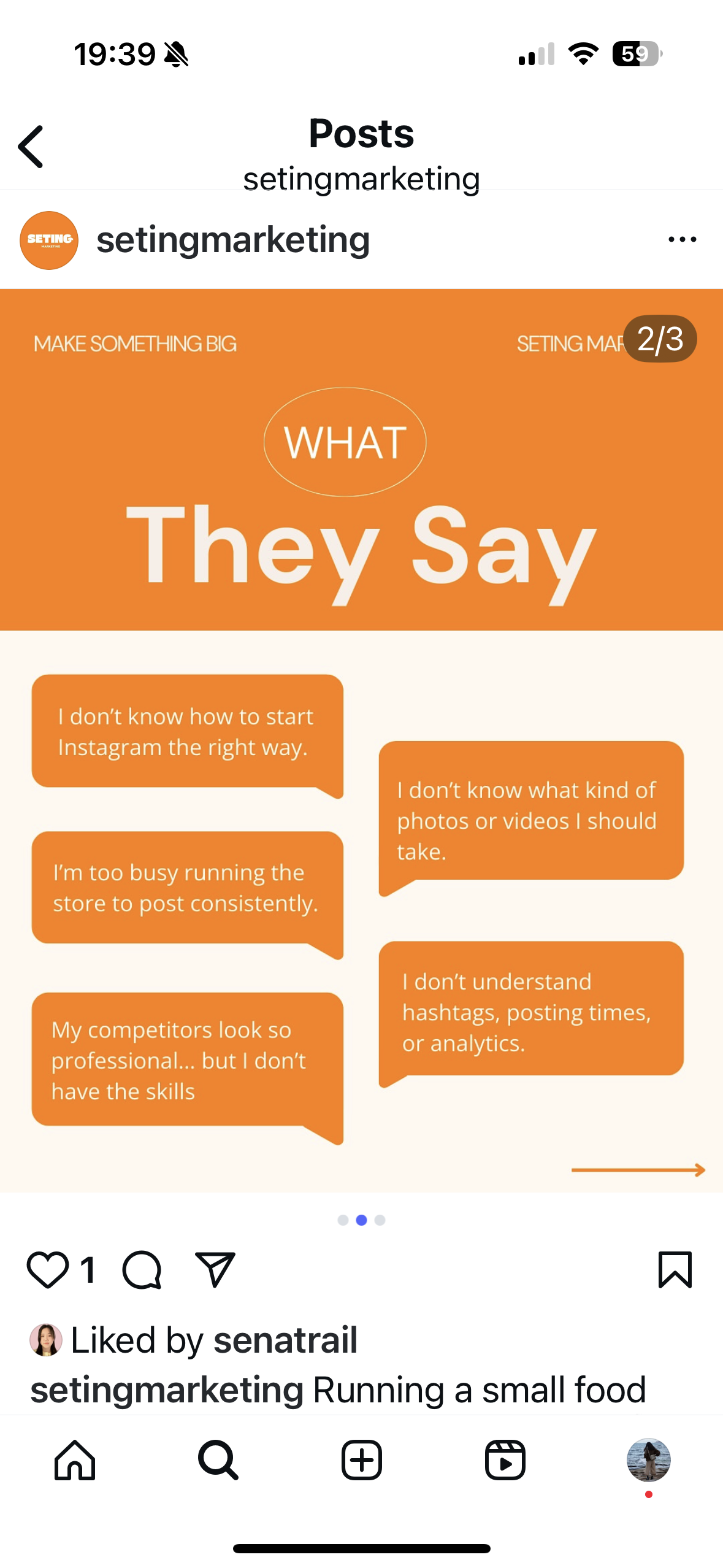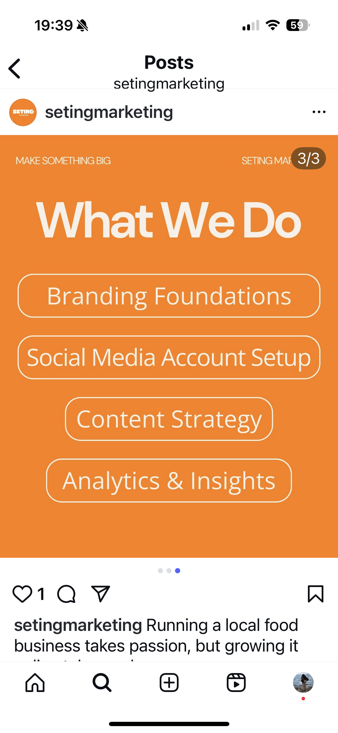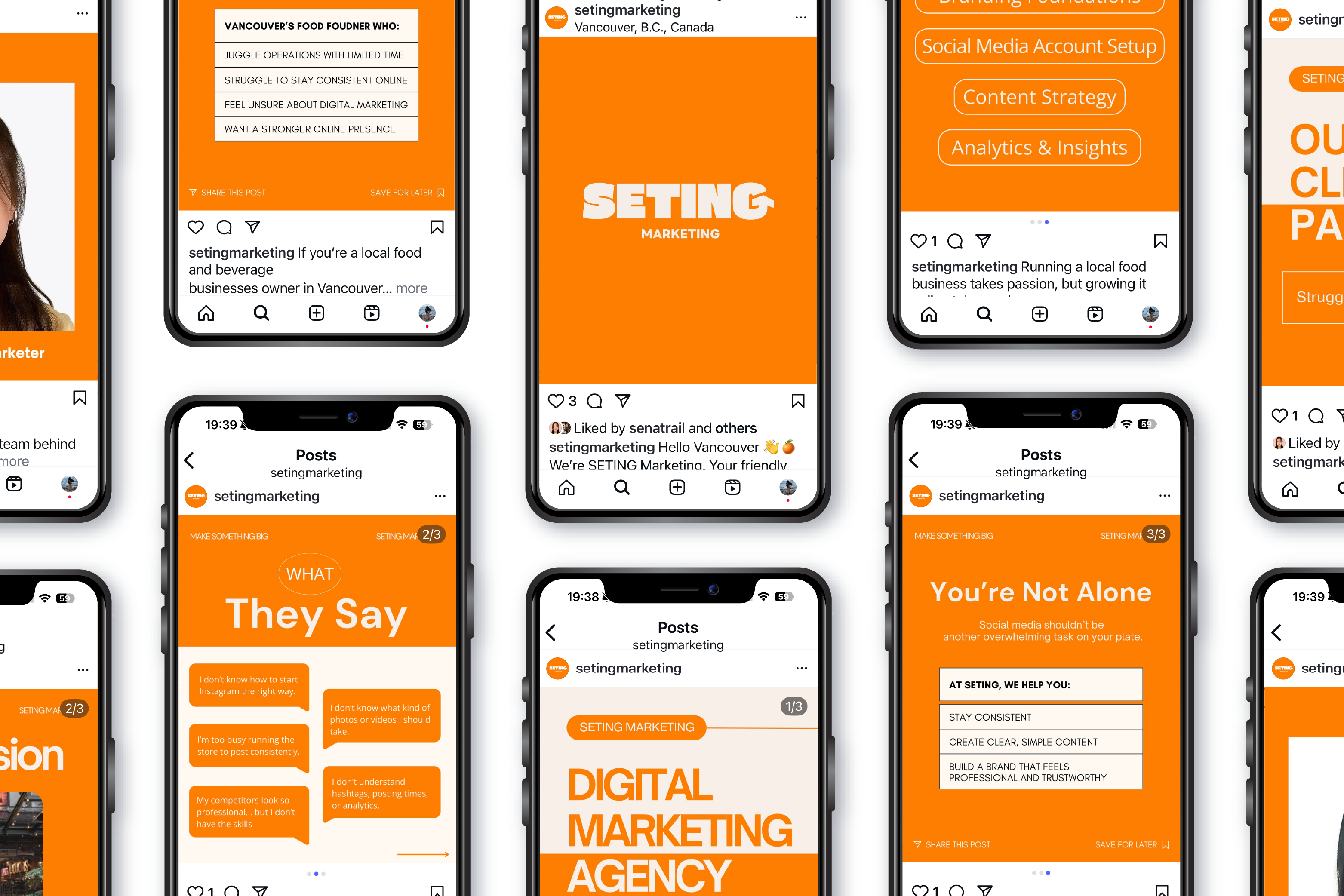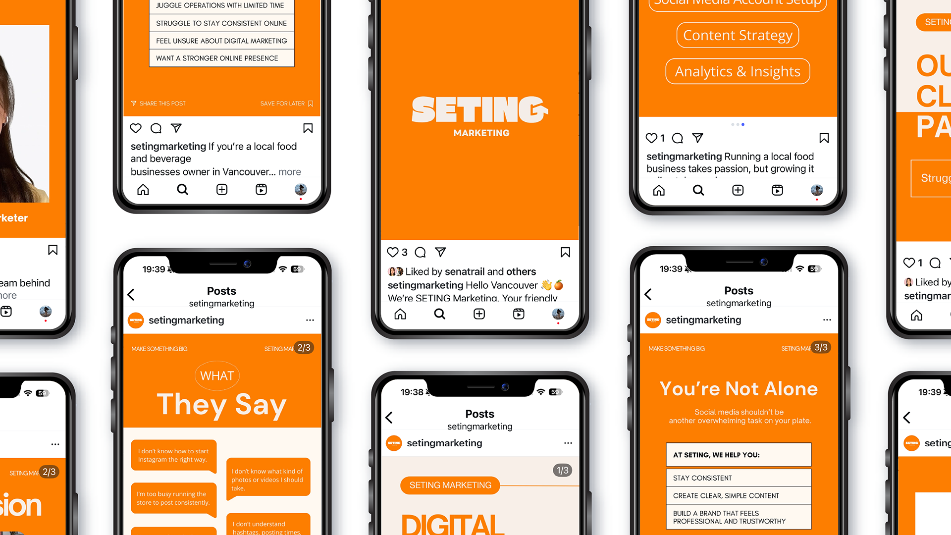 Post 1: Introduction "Who We Are" Purpose Introduce SETING Marketing with a clear brand mission and visual identity. |