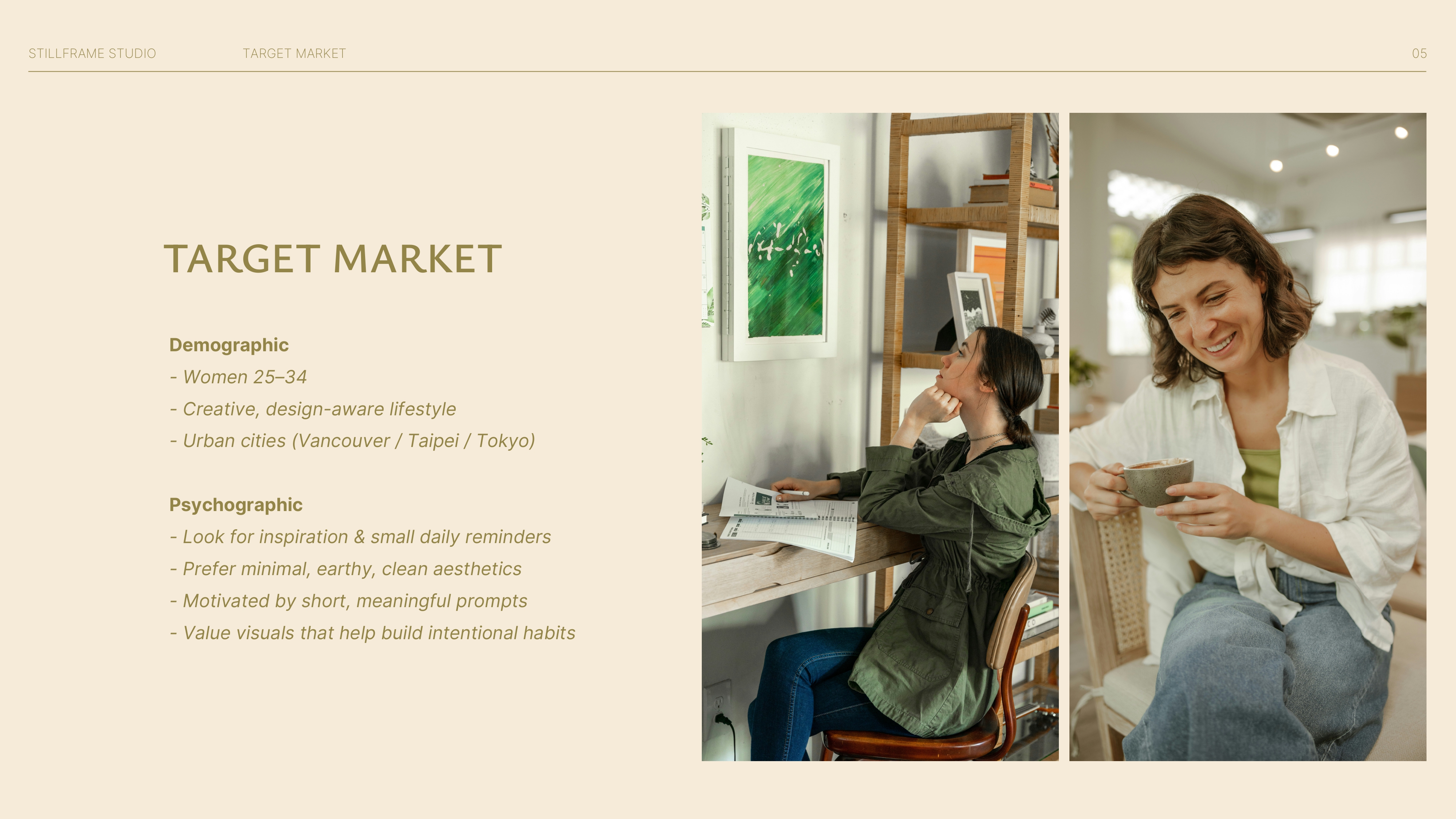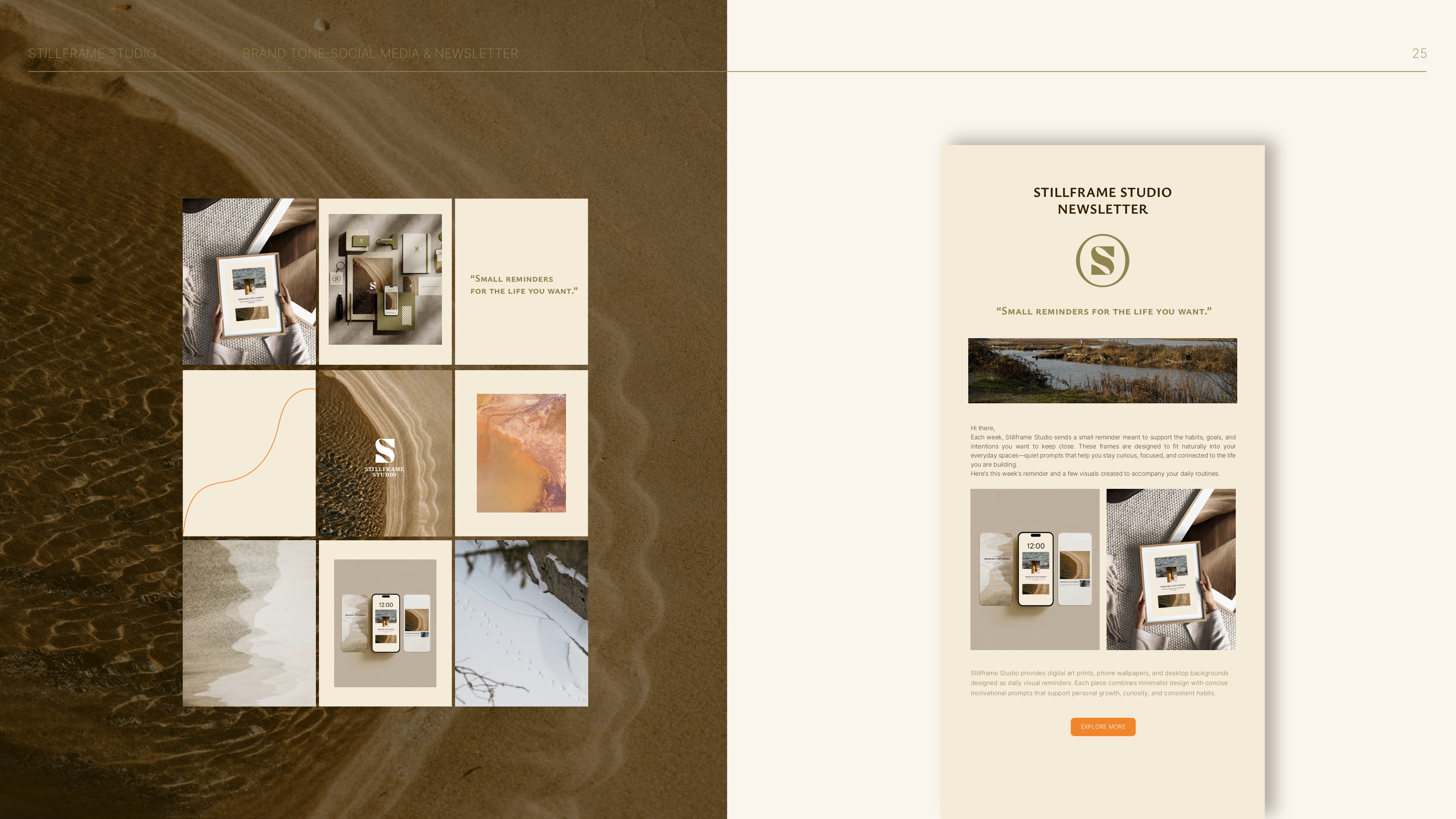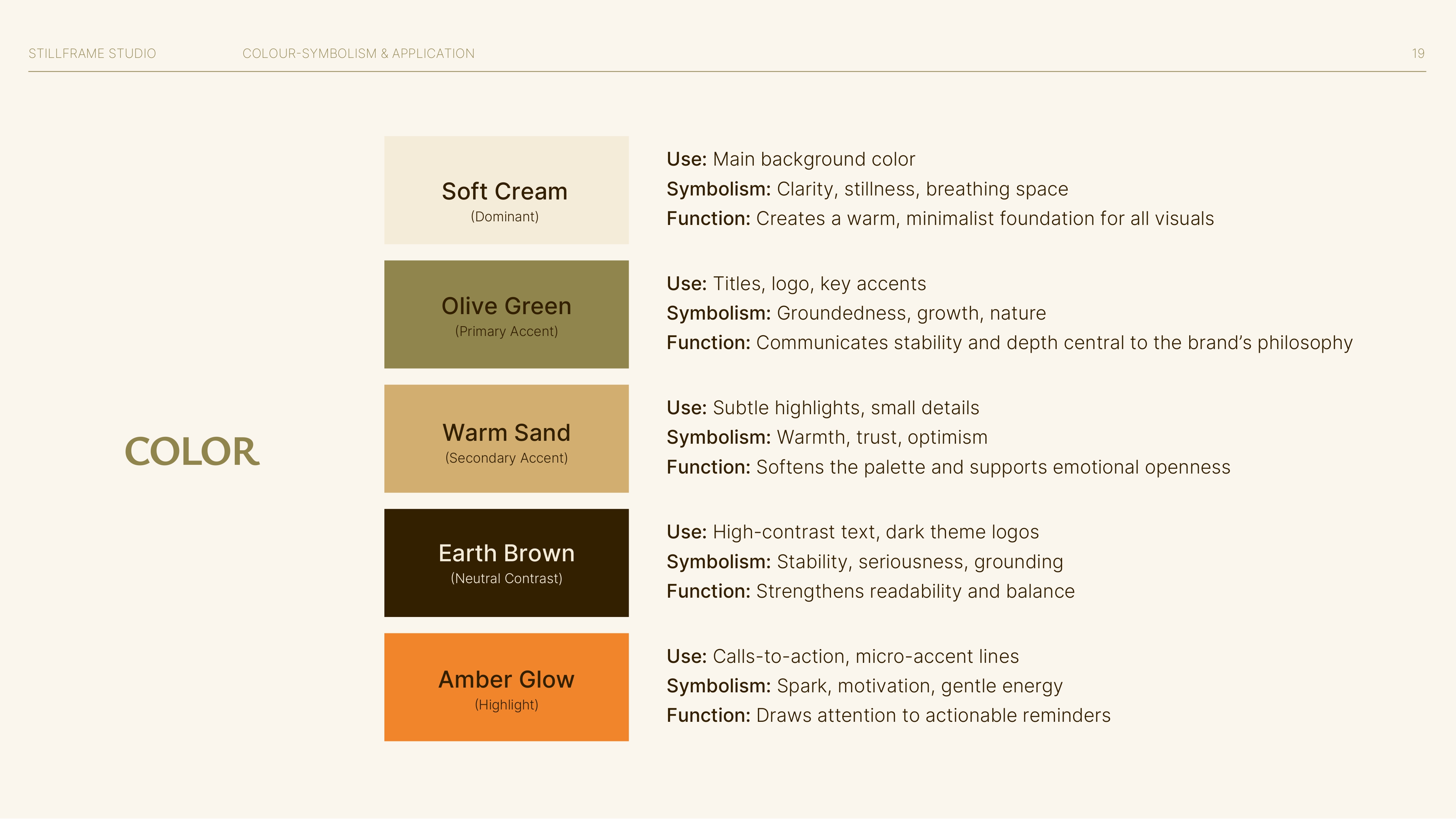 StillFrame Studio is a personal brand concept developed to explore how visual identity can support intentional living through calm, focused design.